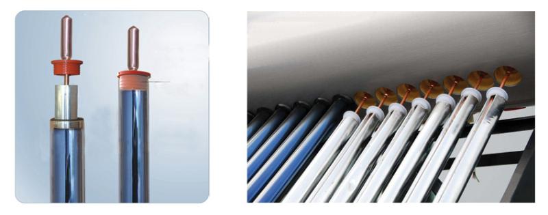 承壓式太陽能熱水器的水箱類似于自來水管道中的一根粗管,它沒有冒氣孔,因此必須承受自來水壓力以及水加熱后膨脹壓力,在使用熱水時,熱水由自來水壓力壓出。太陽能量通過玻璃真空管采集,由金屬超導(dǎo)熱管傳熱至承壓